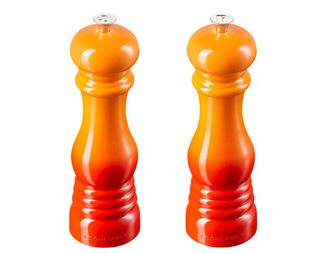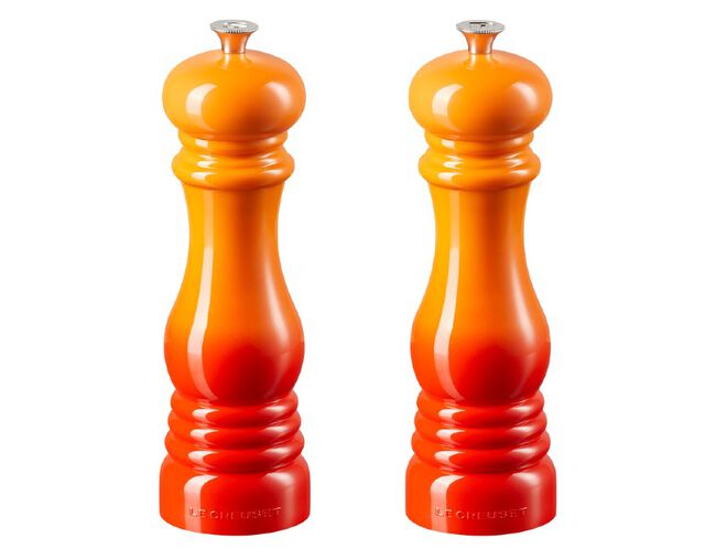 O Set Moedores Sal & Pimenta da Le Creuset combinam a forma clássica e a tecnologia moderna com nossas cores icônicas. Além de elegantes nossos moedores de Sal e Pimenta são fabricados em Plástico ABS, material ultra resistente. O ajuste de moagem é feito por meio de um pino localizado no topo da peça onde é possível determinar a espessura do condimento.