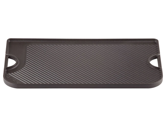 Com uma superfície de cozimento generosa e design dois em um, a grelha reversível traz o sabor delicioso de grelhados ao ar livre convenientemente para dentro de casa. A superfície de cozimento pode acomodar refeições tamanho família de kebabs, hambúrgueres, bifes e vegetais no lado da grelha, e panquecas, ovos e bacon no lado liso. Possui acabamento com esmalte acetinado preto que dispensa o tradicional tempero e manutenção do ferro fundido bruto. Especialmente formulado para cozimento em altas temperaturas de superfície, o esmalte desenvolve uma pátina natural com o tempo, ideal para tostar, dourar e grelhar.