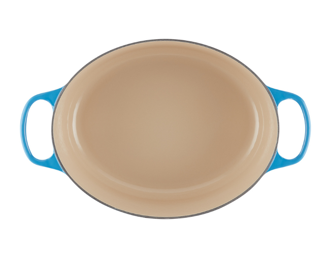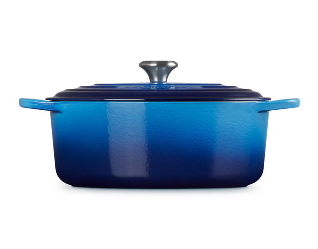 A icônica Panela Oval Signature da Le Creuset é indispensável nas cozinhas de cozinheiros domésticos e chefs profissionais. Habilmente trabalhada com ferro fundido esmaltado, a versatilidade diária da Panela Oval Signature a torna ideal para tudo, desde cozimento lento e refogado até assar, cozinhar, fritar e muito mais. A forma oval é particularmente adequada para cortes maiores de carne, frangos inteiros e para assar pães de formato oval.