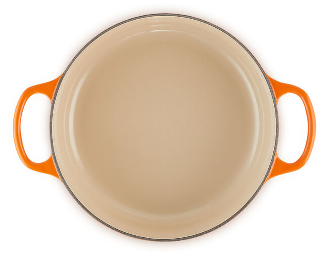 A Panela Risotto é revestida com o esmalte resistente e durável da Le Creuset, que é resistente a manchas e lascas.