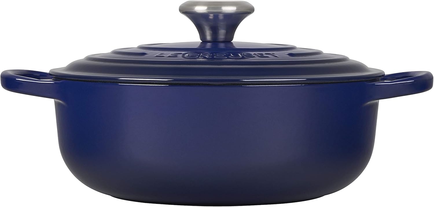 A Panela Sauteuse Signature tem suas laterais inclinadas e uma base grande ideal para cozimento em fogo médio e baixo. É uma panela versátil que também funciona para tostar, saltear, refogar e fritar.
